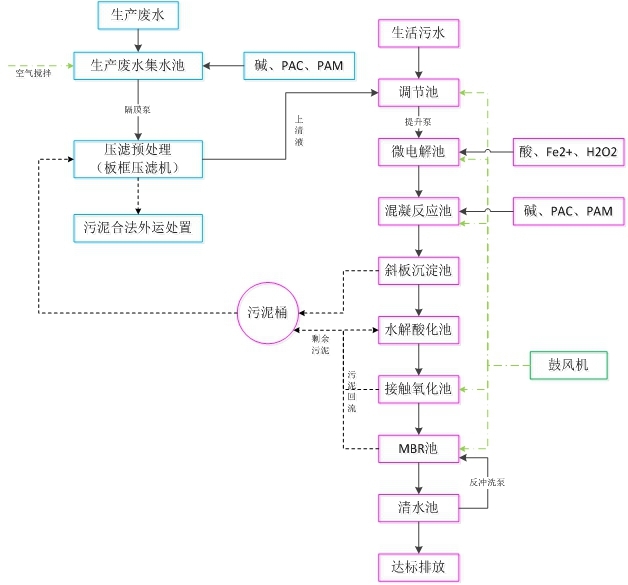 其水量約為生產廢水4m3/d,生活污水26m3/d,運行時間20小時每天。